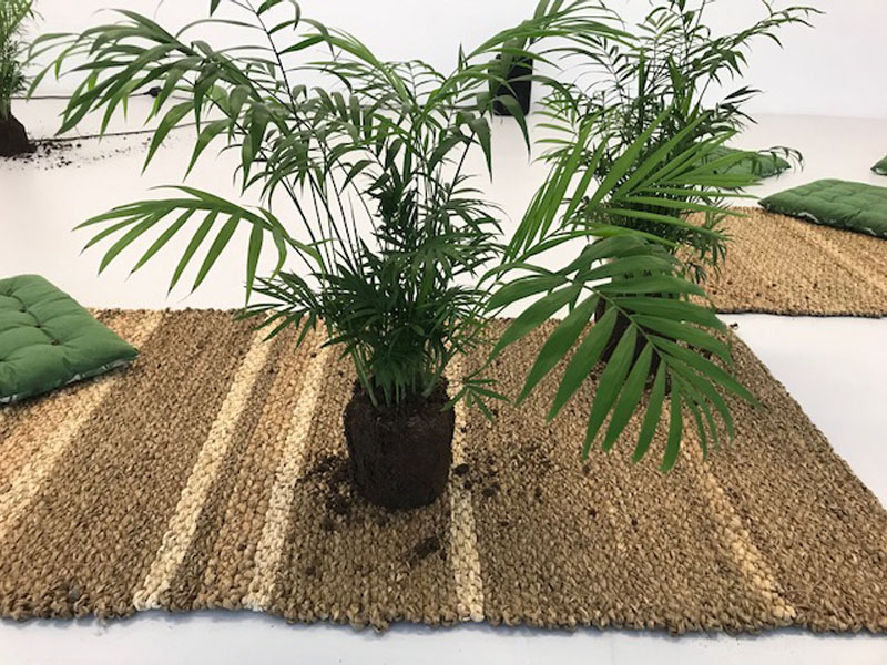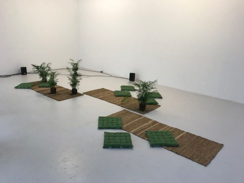 BWV 54, 2022, Audioplayer, Lautsprecher, Sound, Palmen, Kissen, Kaffeebohnen, Teppiche, Rundgang Kunsthochschule Mainz